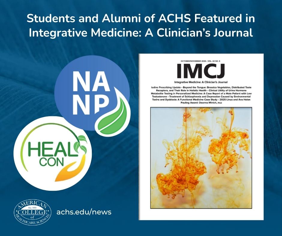 PORTLAND, OR, UNITED STATES, November 11, 2025 /EINPresswire.com/ -- The American College of Healthcare Sciences (ACHS) is proud to announce that six of its students and alumni have their abstracts published in the October/November 2025 volume of Integrative Medicine: A Clinician’s Journal (IMCJ). These abstracts were originally presented at the HEALCon 2025 Conference (May 1-4, 2025) hosted by the National Association of Nutrition Professionals (NANP), and now appear in this respected peer-reviewed journal. — ACHS Dean of Doctoral Studies Dr. Janet Ludwig.